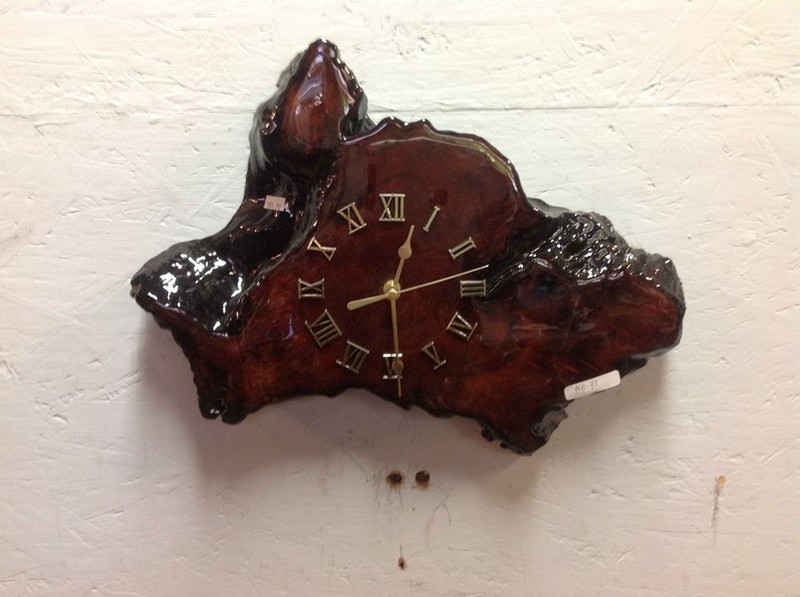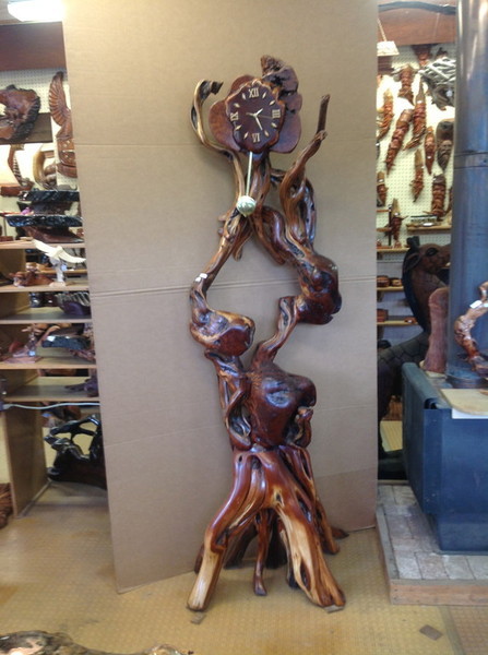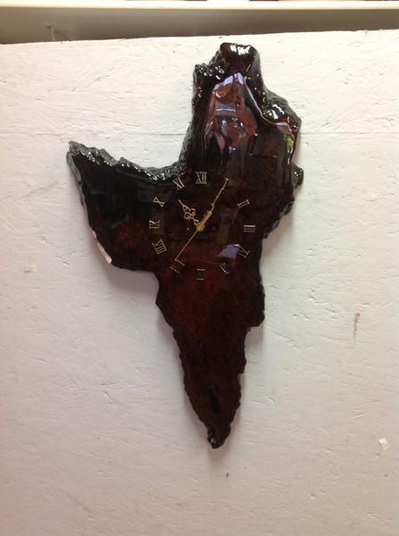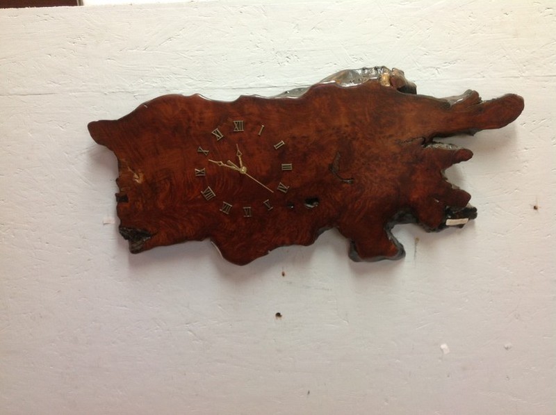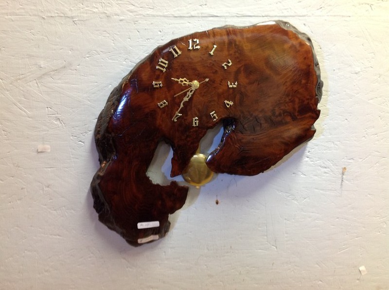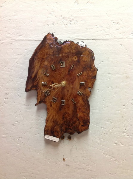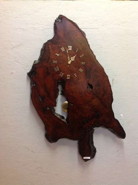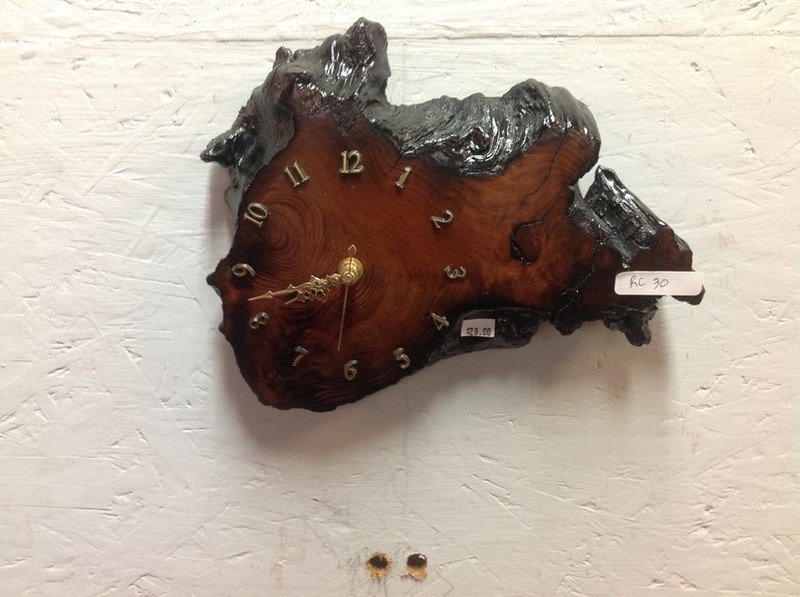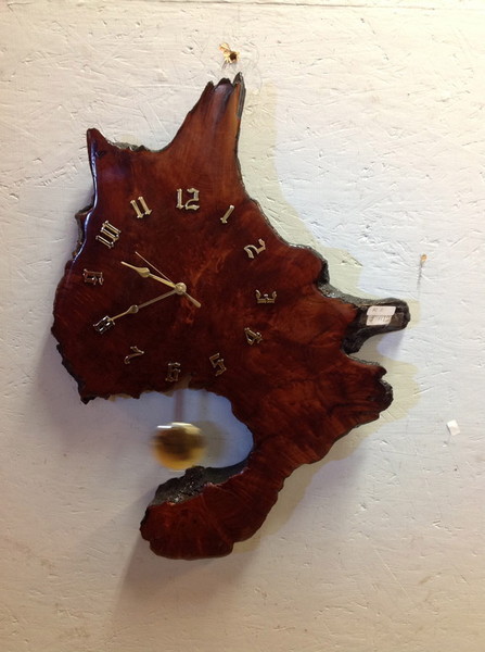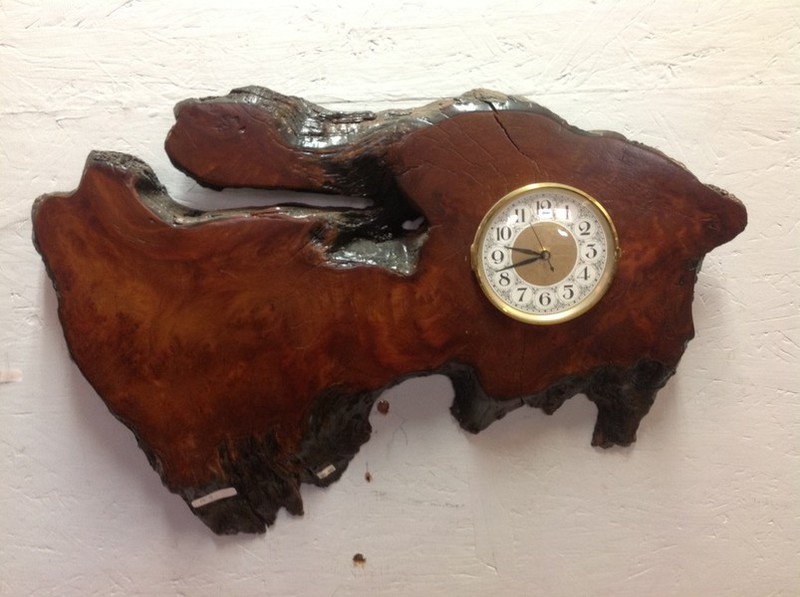 All of our clocks are handmade from local CALIFORNIA REDWOOD, MYRTLE, MAPLE and BUCKEYE. They are gathered from the seashore, creeks and woods of Northern California (by legal and sustainable means) and made on-site by our woodworkers.