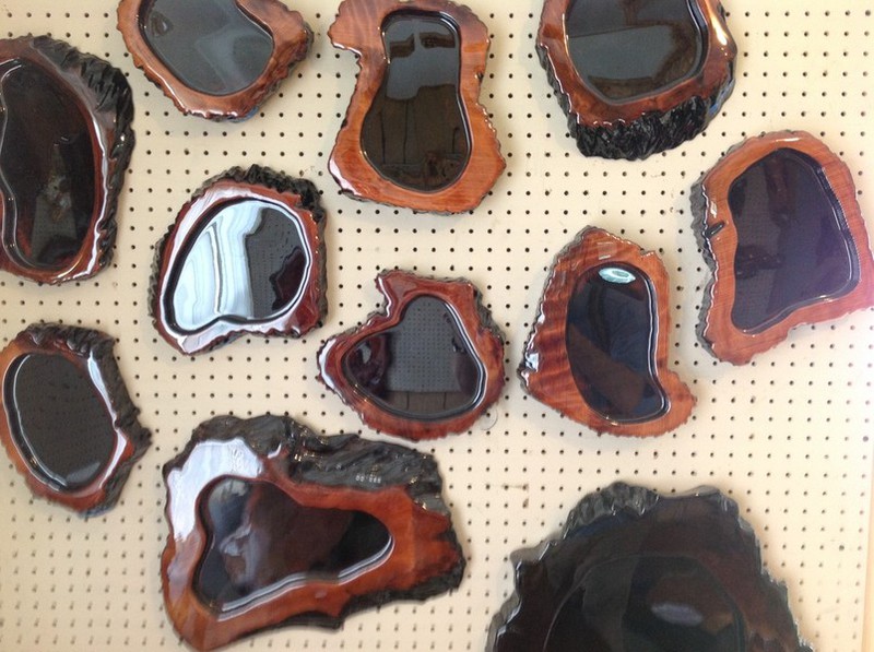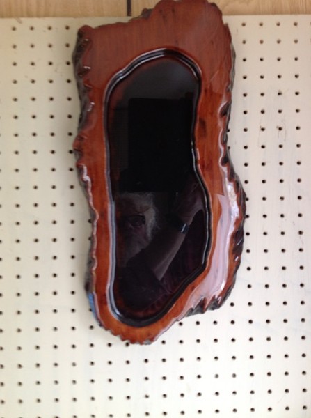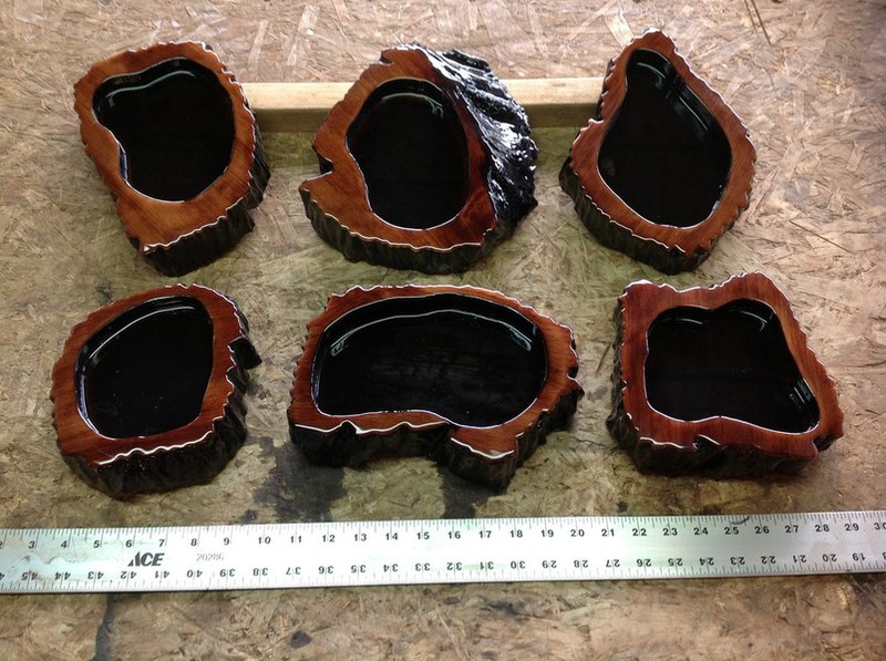 Here at CALIFORNIA NATIVE WOOD, we create hundreds of one-of-a-kind burl bowls every year. Really... we make them up as we go along. Each is made of REDWOOD. We rout out various sizes and shapes to accommodate the many shapes a LIVE BURL will take on. We then burn the edges and bowl portion, turning them jet black. We sand and finish the bowls, then apply several resin coats, making the bowl both waterproof and beautiful to the eye.