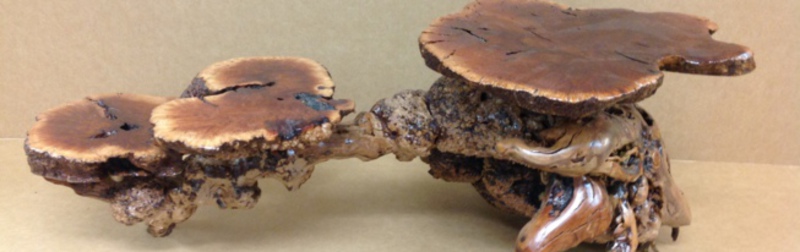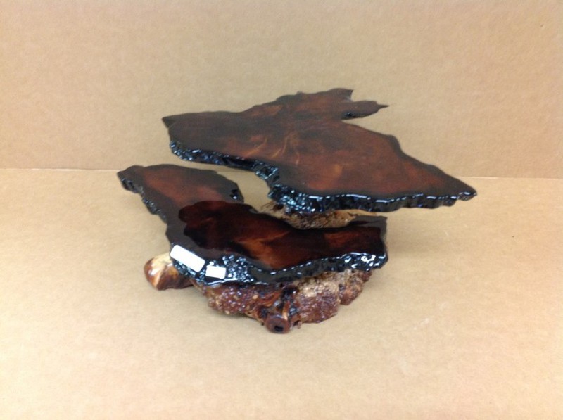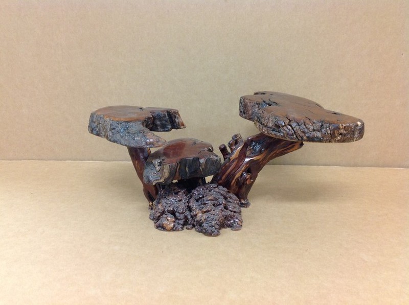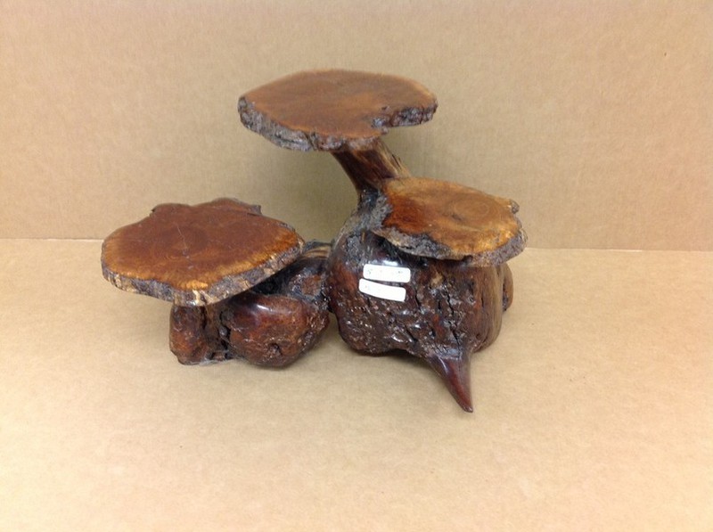 Some of our best selling items. These are made from all sorts of different woods; redwood, Manzanita burl, fir... whatever the streams and shores of northern California provide us to work with. Usually about one square foot average for each mini, sometimes smaller sometimes larger... depends on how we feel... and what's available.