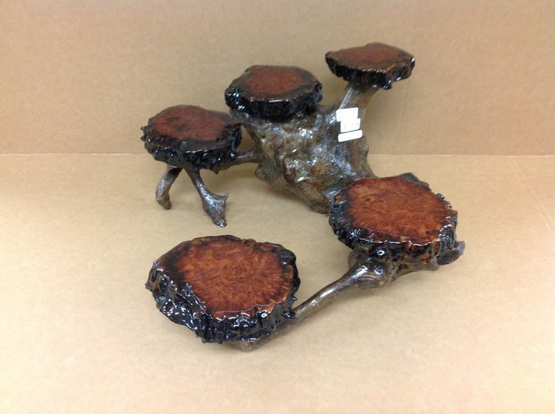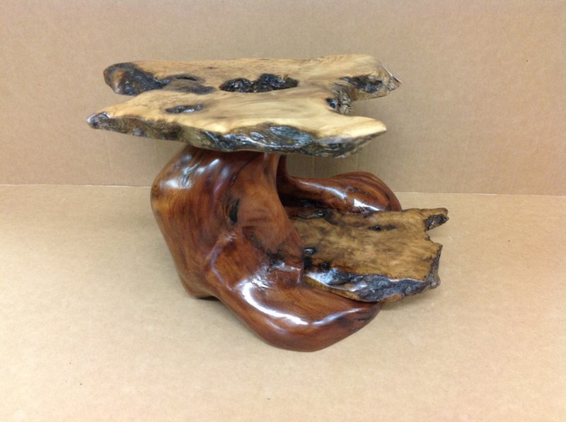 The name MANZANITA is Spanish, and literally translated to "LITTLE APPLE". The burl is either cut into slabs for table tops or left intact to use as bases. From creamy white to a deep burgundy red, manzanita is one of my favorite woods.