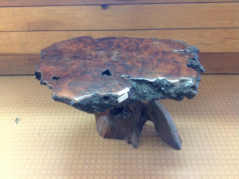 Enjoy and own a beautiful REDWOOD BURL TABLE, a one-of-a-kind conversation piece that will last for generations!